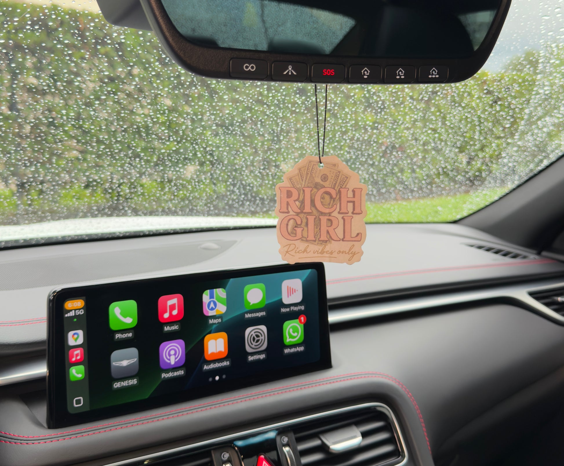 Step into luxury with the Essentials Rich Girl Bundle. Designed with a playful money-print and bold pink tones, this set includes a matching air freshener and keychain — the perfect duo to keep your car smelling sweet while showing off your rich-girl energy.